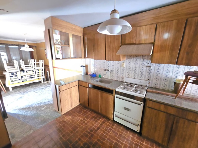 Casa estilo Mar del Plata realizada con materiales nobles, buena comodidad, compuesta de jardín al frente, living con hogar a gas, ventanas repartidas con vitraux, cocina comedor con ventilación natural, 2 habitaciones con placares, baño completo. Entrada para 1 auto con portón de rejas y garage doble cubierto con portón corredizo, patio con parrilla