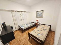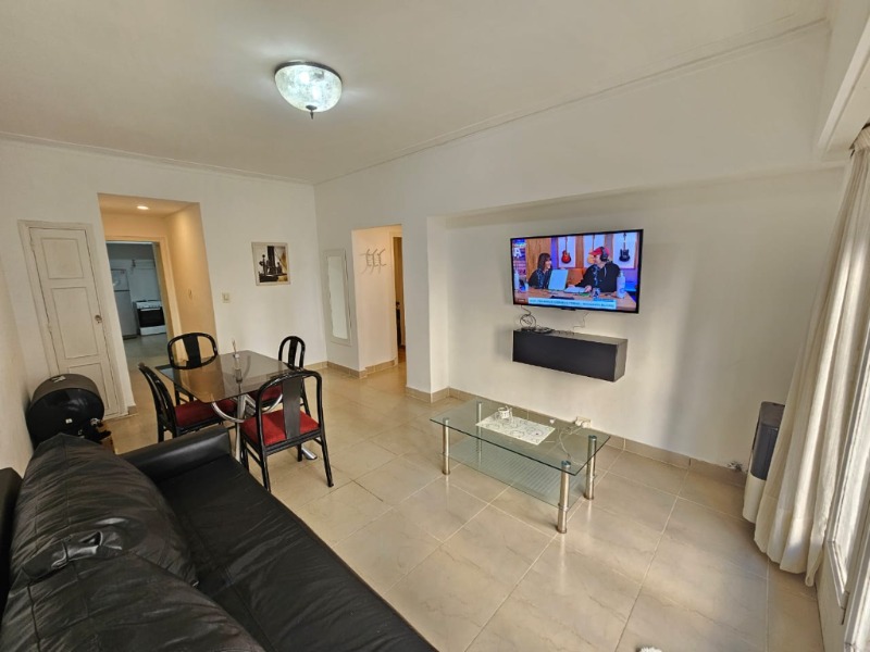 3 ambientes con dependencia ubicado en un 1er piso al frente con balcón saliente, cuenta de living comedor con salida al balcón a la calle, dormitorio principal al frente con ventanal y placard, 2do dormitorio al contrafrente con placard, baño completo, cocina separada con ventilación natural, dependencia de servicio con toilette. TV con CABLE y WIFI.