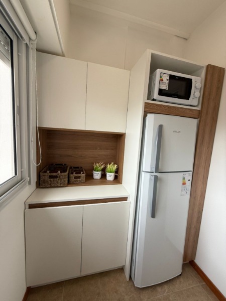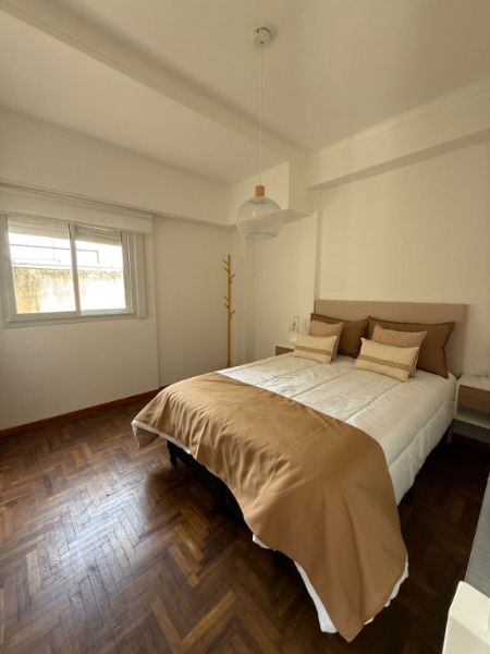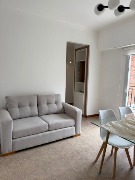3 Ambientes ubicado en un 8vo piso, living comedor con salida al balcón terraza a la calle, cocina separada con ventilación natural, amoblada, espacio para lavarropas, dependencia utilizada como extensión de la cocina, toilette, dormitorio principal con ventana, doble placard, 2do dormitorio con ventana con vista lateral a la calle, baño completo con mampara. Calefacción por radiadores. Amoblado y decorado