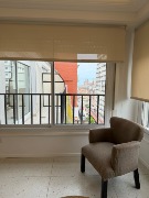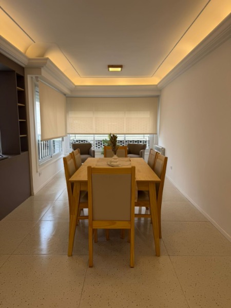 4 ambientes ubicado en un 8vo piso, living comedor con salida al balcón a la calle, con vista lateral al mar, comedor diario, cocina separada con ventilación natural, amplias dimensiones, lavadero con ventilación natural, toilette, dormitorio principal a la calle, placard a medida, 2do dormitorio al contrafrente con placard a medida, baño con ducha, toilette. Calefacción por radiadores, agua central. Amoblado y decorado
