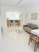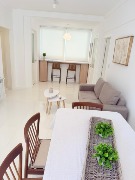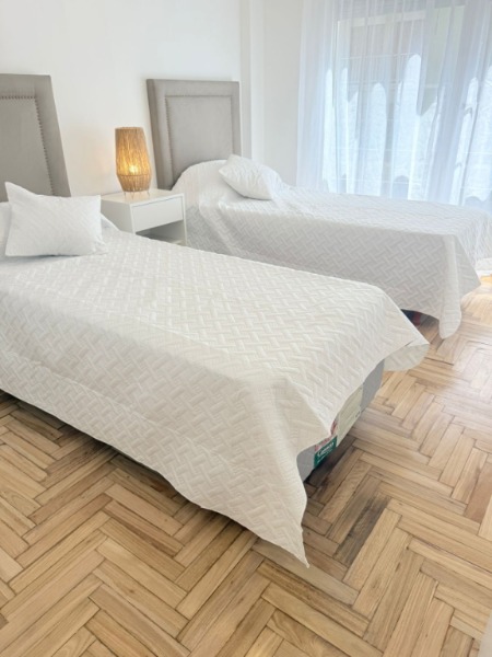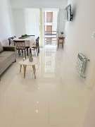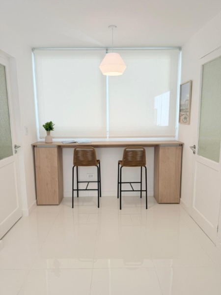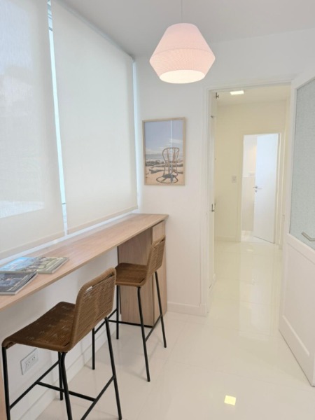 3 ambientes ubicado en un 5to piso, amplio living comedor con salida al balcón a la calle, barra desayunadora con mueble de apoyo, cocina separada con ventilación natural, en L, lavadero, toilette, dormitorio principal a la calle con balcón francés, pisos parquet lustrado y plastificado, amplio placard con baulera, 2do dormitorio a la calle con balcón francés, pisos parquet lustrado y plastificado, amplio placard con baulera, baño con ventilación natural, ducha con pediluvio y mampara, escritorio o dependencia separada con ventilación natural. Obra de gas realizada. Calefacción por radiadores. Amoblado y decorado