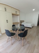 2 ambientes ubicado en un 5to piso, living comedor con salida al balcón a la calle, piso porcelanato, cocina separada con ventilación natural, disposición en L, muebles a medida, cocina Volcán, lavarropa Dream, heladera Dream, termotanque Saiar, espacio funcional y moderno, dependencia con placard empotrado a medida, toilette, dormitorio con ventana, piso parquet, placard empotrado a medida, baño con ducha con pediluvio y mampara, revestido en cerámico. Amoblado y decorado Totalmente reciclado
