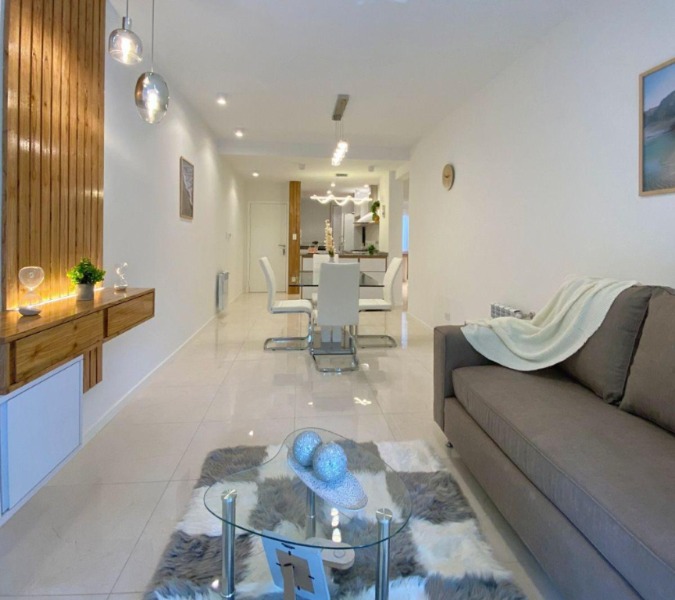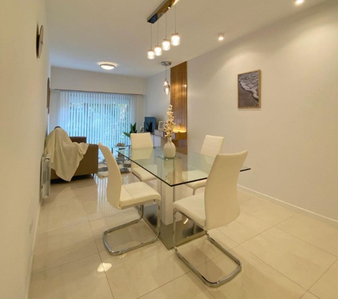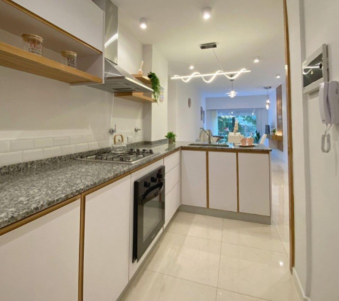 Departamento 3 ambientes reciclado en un 1er piso a la calle Living comedor a la calle con salida a balcón saliente muy luminoso, cocina integrada mediante barra desayunadora con amoblamiento a medida y lavadero incorporado con ventilación natural, dormitorio principal al frente en suite con placard empotrado, segundo dormitorio al contrafrente con placard a medida y escritorio, dos baños, uno en suite y el otro con mampara y ducha. Calefacción por radiadores Excelente ubicación, en el centro de la ciudad, a una cuadra de la Plaza mitre Se vende amoblado