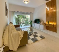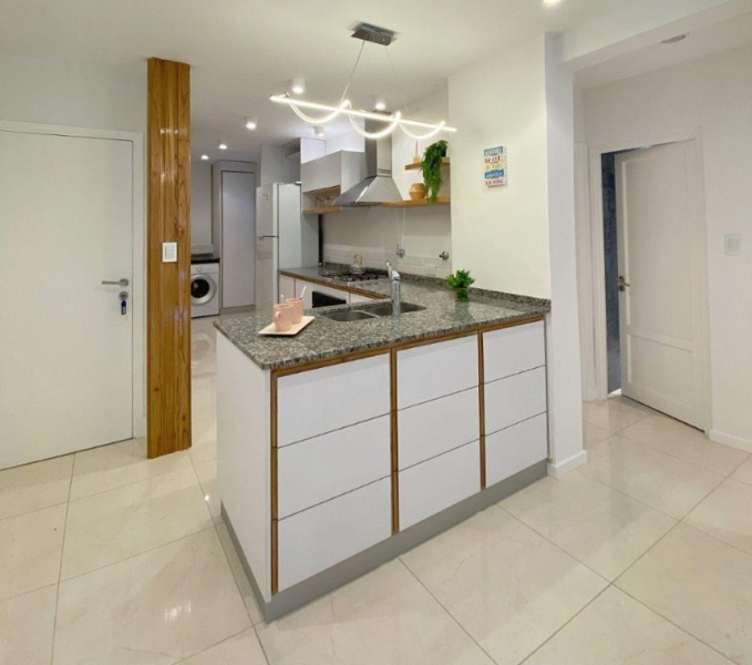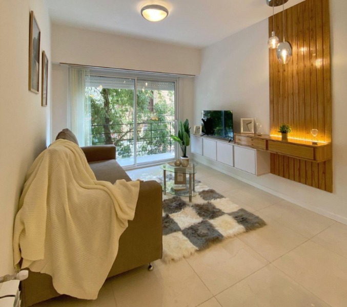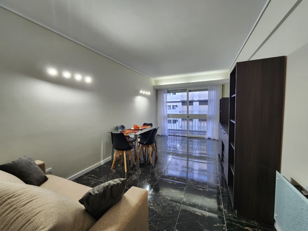 2 ambientes ubicado en un 8vo piso, living comedor con salida al balcón a la calle con vista al mar, cocina separada con ventilación natural, espacio ara lavarropas, equipada, dormitorio al contrafrente con ventana, placard, baño con ventilación natural, ducha con mampara. Calefacción por radiadores. Amoblado Totalmente reciclado