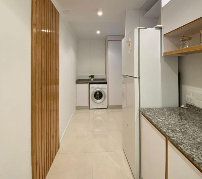 2 Ambientes ubicado en un 4to piso, living comedor con salida al balcón a la calle, pisos cerámicos, calefactor, cocina separada con ventilación natural, revestida en cerámicos, espacio para lavarropas, termotanque eléctrico, dormitorio con ventana, pisos de parquet plastificados, placard a medida, calefactor, dependencia con toilette, baño con ducha y mampara. Amoblado. Espacio de cochera Totalmente reciclado