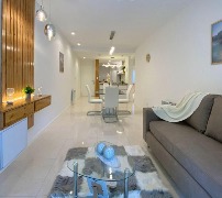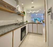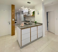 Departamento tipo penthouse ubicado en un 9no piso con vista parcial al mar desde su balcón terraza. Toilette de recepción. Cuenta con un recibidor, living amplio que se une en forma de L con el comedor. Cocina con doble circulación y barra con salida al balcón terraza que posee quincho semi-descubierto con parrilla y un sector descubierto. Desde el living se accede al sector de quincho cubierto propio del departamento. Sector de dormitorios con 2 habitación cada una con placard y un baño completo, 3er dormitorio con toilette con ducha. Aire acondicionado. Obra de gas realizada.