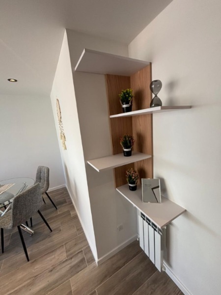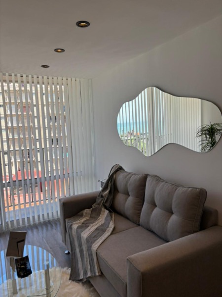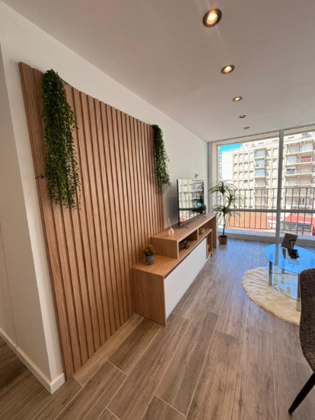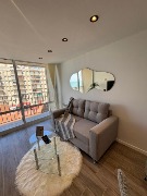 2 ambientes ubicado en un 8vo piso, living comedor con salida al balcón a la calle con vista al mar, cocina separada con ventilación natural, espacio ara lavarropas, equipada, dormitorio al contrafrente con ventana, placard, baño con ventilación natural, ducha con mampara. Calefacción por radiadores. Amoblado