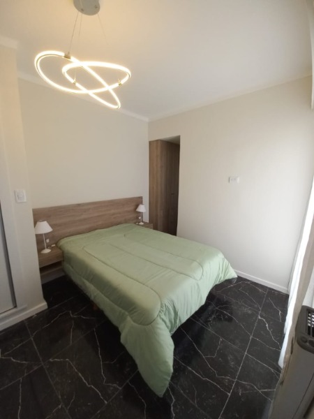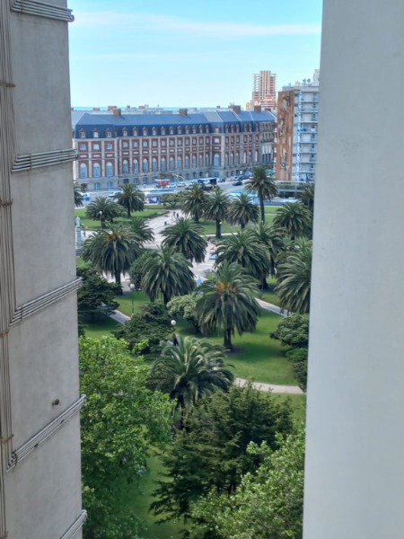 3 Ambientes ubicado en un piso 12, amplio living con salida al balcón con vista panorámica de la ciudad y vista lateral al mar, cocina incorporada con ventilación natural, de generosos dimensiones, totalmente equipada, con comedor integrado, dormitorio principal en suite con vestidor, escritorio y baño privado, 2do dormitorio con ventana, muy luminoso, placard, baño con ducha con mampara. Calefacción por radiadores. Amoblado y decorado