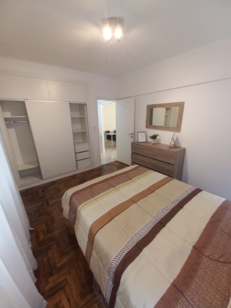 2 ambientes ubicado en un 5to piso, living comedor con ventana al lateral abierto, pisos cerámicos, cocina separada con ventilación natural, equipada, dormitorio con ventana, pisos de parquet plastificados, placard a medida, baño con ducha con pediluvio y mampara. Cañerías de gas, luz y aguas realizadas a nuevo