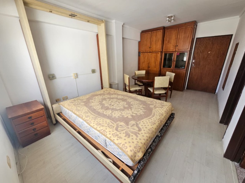 2 Ambientes ubicado en un 6to piso, living comedor con salida al balcón a la calle con vista a plaza Colón, totalmente amoblado con tv y toma de USB para carga de celular, calefacción, aberturas DVH todos los ambientes, cocina separada con ventilación natural, equipada con lavarropas automático, purificador spar, cocina de acero inoxidable, heladera con freezer, mesada de cuarzo, dormitorio con ventana, piso de parquet, placard con luz led interior, calefacción, baño con ducha con mampara corrediza con vidrio templado. Amoblado y decorado