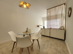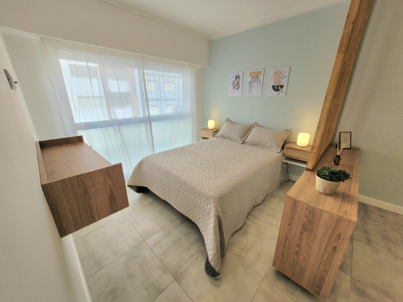 3 ambientes ubicado en un 1er piso, living comedor a la calle con salida al balcón con vista lateral al mar, cocina integrada totalmente equipada, lavadero con lavarropas y ventilación natural, dormitorio principal con salida al balcón, baño en suite, placard a medida, 2do dormitorio al contrafrente, cuenta con escritorio y placard a medida, baño con ducha con mampara. Calefacción por radiadores. Amoblado Totalmente reciclado