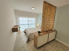 3 Ambientes ubicado en un piso 12, amplio living con salida al balcón con vista panorámica de la ciudad y vista lateral al mar, cocina incorporada con ventilación natural, de generosos dimensiones, totalmente equipada, con comedor integrado, dormitorio principal en suite con vestidor, escritorio y baño privado, 2do dormitorio con ventana, muy luminoso, placard, baño con ducha con mampara. Calefacción por radiadores. Amoblado y decorado Totalmente reciclado