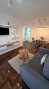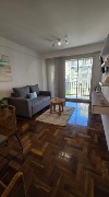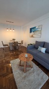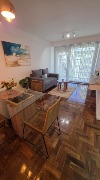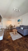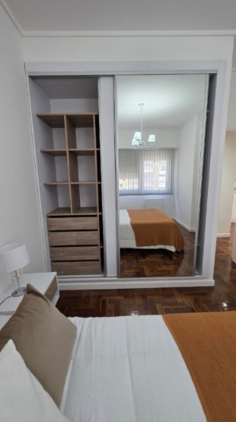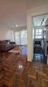 2 Ambientes ubicado en un 8vo piso, living comedor con salida al balcón a la calle, cocina separada con ventilación natural, equipada espacio para lavarropas, dormitorio con ventana a la calle, piso de parquet, placard con luz led interior, calefacción en living y comedor, baño con ducha con mampara corrediza y vidrio templado. Aberturas DVH todos los ambientes. Amoblado y decorado Totalmente reciclado