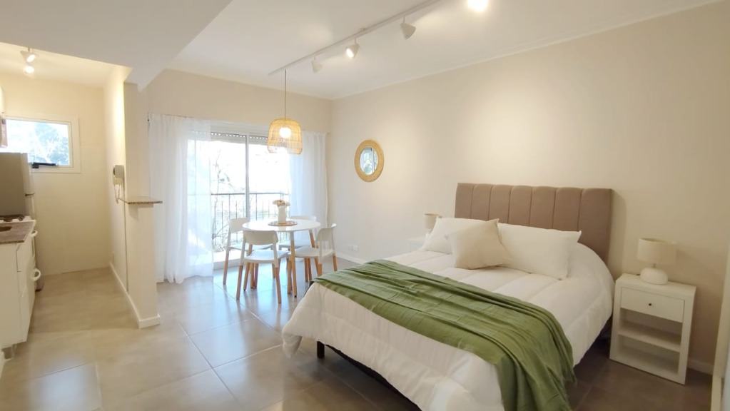 3 Ambientes ubicado en un 5to piso, living comedor con salida al balcón a la calle sobre vereda de sol, cocina separada con ventilación natural, espacio para lavarropas, equipada, dormitorio principal en suite, baño completo, piso parquet plastificado y placard a medida, 2do dormitorio con ventana, piso parquet plastificado y placard a medida, placard a medida en hall de distribución, baño con ventilación natural y box de ducha. Calefactores tiro balanceado en todos sus ambientes. Amoblado
