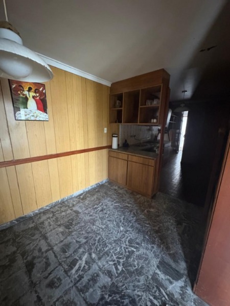 Casa estilo Mar del Plata realizada con materiales nobles, buena comodidad, compuesta de jardín al frente, living con hogar a gas, ventanas repartidas con vitraux, cocina comedor con ventilación natural, 2 habitaciones con placares, baño completo. Entrada para 1 auto con portón de rejas y garage doble cubierto con portón corredizo, patio con parrilla