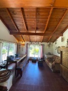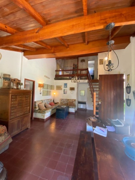 VENTA Casa quinta en lote de 1200mts, 216mts cubiertos. 6 ambientes, 3 baños, emplazada sobre 2 lotes con frondosa arboleda y especies frutales, lote totalmente delimitado con alambre y ligustrina, estilo campestre en madera y ladrillo haciéndola acogedora, la casa principal cuenta con living con hogar y ventanales al parque, 2 dormitorios, baño completo, cocina separada y en planta alta, 3 habitaciones con baño completo. En dependencia de servicio encontramos lavadero cubierto de amplias medidas, quincho con parrilla y cocina, baño de servicio y habitación