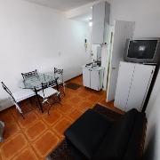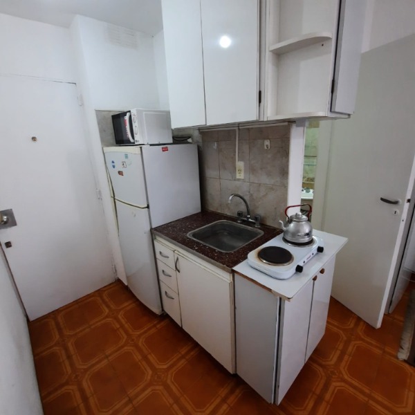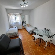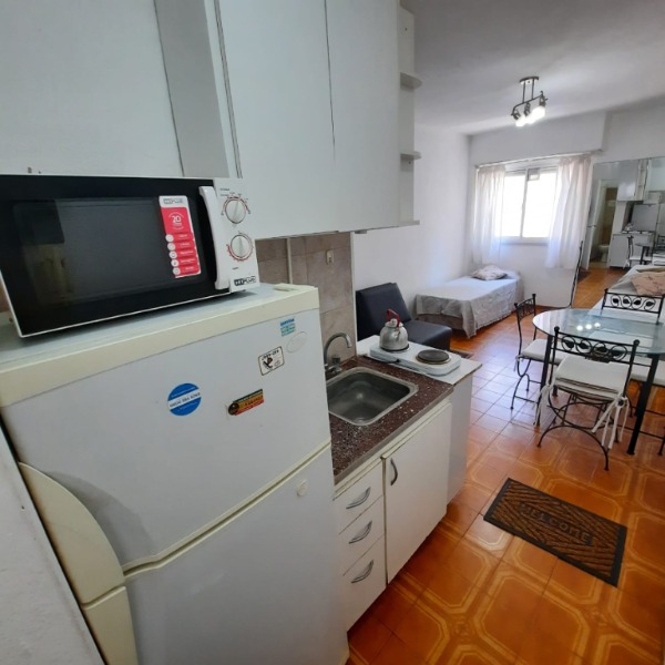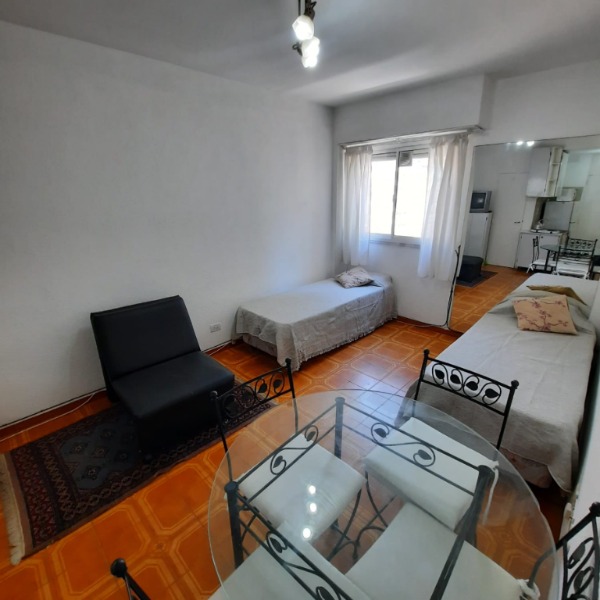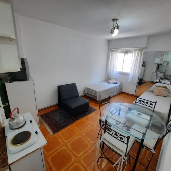 Ambiente a una cuadra del mar, playas del torreón, en un 6to piso. Equipado con dos somiers de una plaza y sofá cama de una plaza, cocina integrada, heladera con freezer, microondas y anafe eléctrico, baño con ducha, muy Luminoso, tv y wi-fi