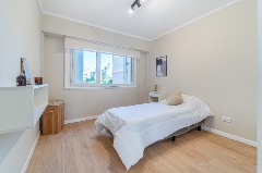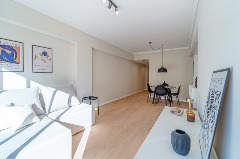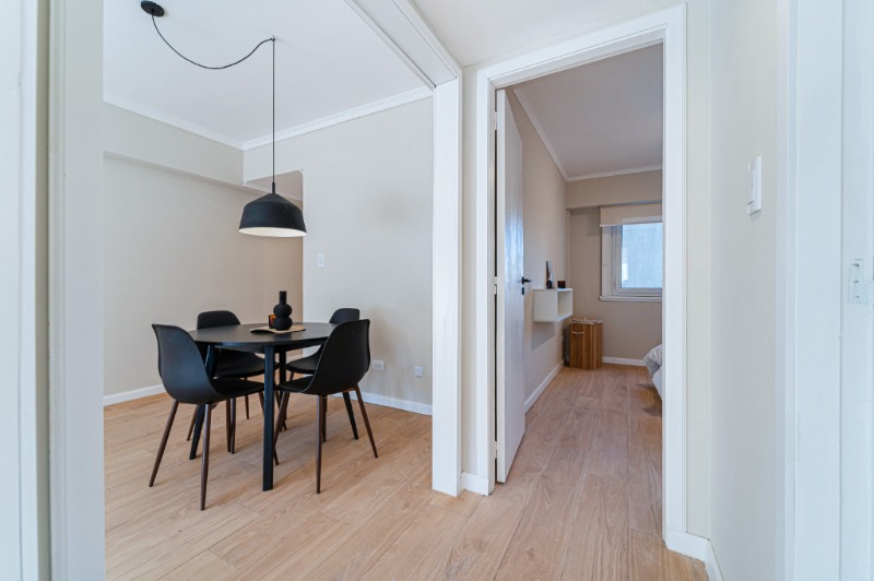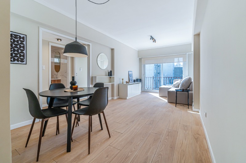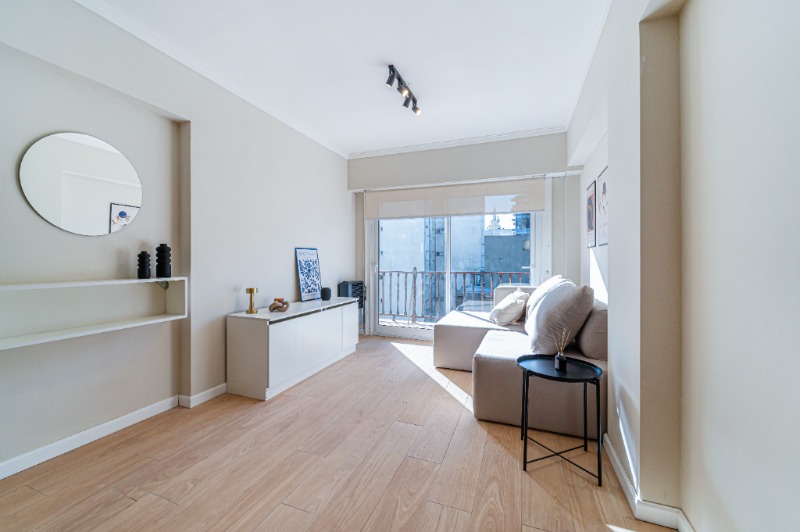 3 Ambientes ubicado en un 6to piso, living comedor con salida al balcón a la calle, cocina separada con ventilación natural, equipada, toilette con espacio para lavarropas, dormitorios con ventana y placard, baño con ventilación natural, ducha con pediluvio y mampara. Calefacción por tiro balanceado. Amoblado Totalmente reciclado Opción de cochera