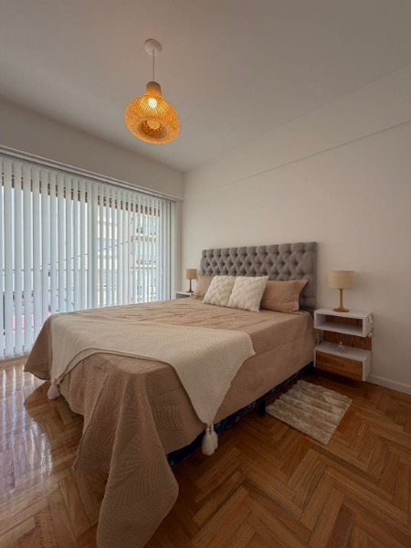 3 ambientes ubicado en un 2do piso, living comedor con salida al balcón a la calle, cocina separada con ventilación natural, espacio para lavarropas, equipada, toilette, dormitorio principal a la calle con balcón, 2do dormitorio con ventana al contrafrente, dependencia de servicio, baño con ventilación natural, ducha con pediluvio y mampara. Calefacción por caldera dual. Amoblado
