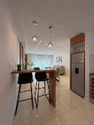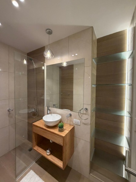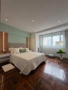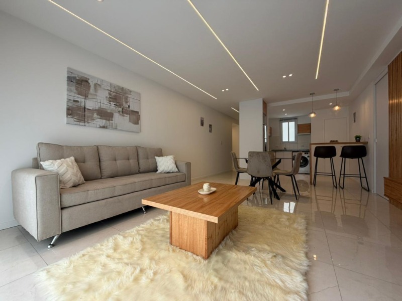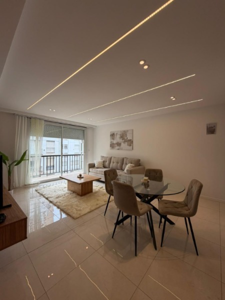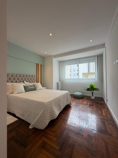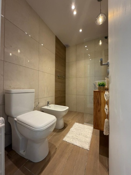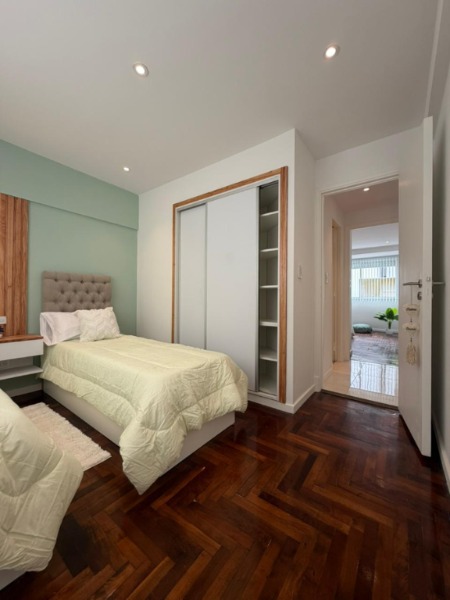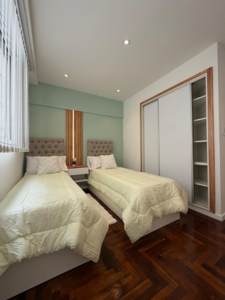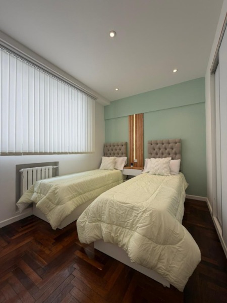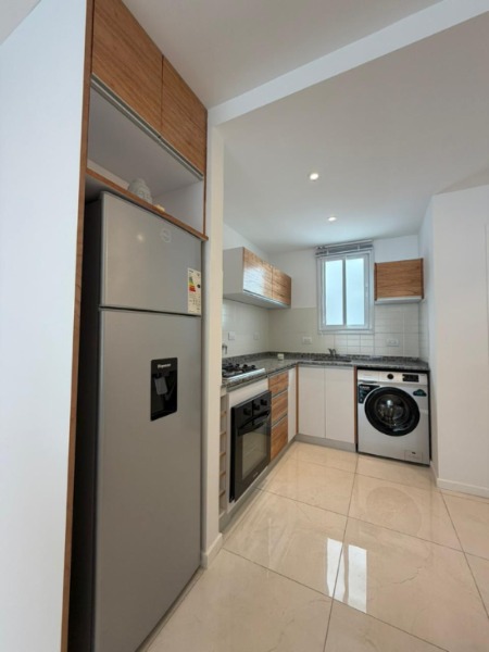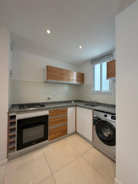 3 ambientes ubicado en un 6to piso, living comedor con salida al balcón a la calle, cocina incorporada con una pequeña barra, ventilación natural, espacio para lavarropas, equipada, toilette, dormitorio principal con ventana a la calle, placard, 2do dormitorio al contrafrente con ventana, placard, baño con ducha con pediluvio y mampara. Calefacción y agua caliente por caldera central. Amoblado Totalmente reciclado