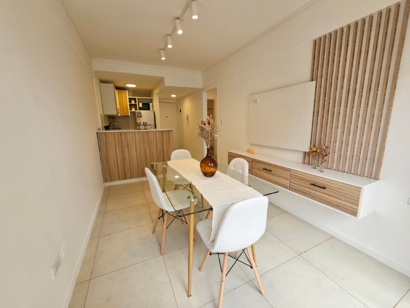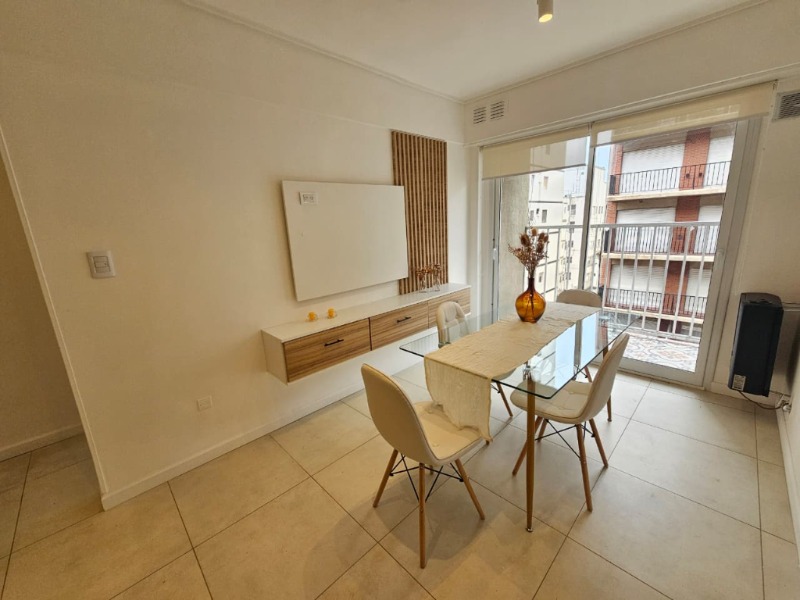 2 ambientes ubicado en un 6to piso, living comedor con salida al balcón a la calle, calefactor tiro balanceado, cocina incorporada con barra desayunadora, equipada, espacio para lavarropas, dormitorio con ventana a la calle, calefactor tiro balanceado, placard a medida, baño con ducha con pediluvio. Amoblado y decorado