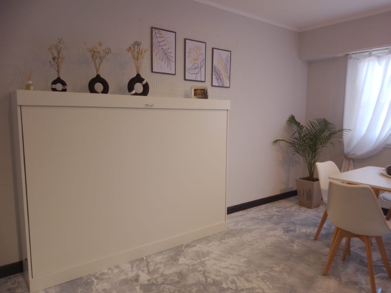 Ambiente contrafrente divisible ubicado en un 5to piso, totalmente reciclado a nuevo Cuenta de living comedor con ventana al contrafrente, cocina integrada por barra desayunadora con ventilación natural con conexión para lavarropas, alacenas y bajo mesada a medida con gran lugar de guardado, dormitorio separado con separación de madera con amplio placard, baño con ducha con mampara de vidrio y ventilación natural. Calefacción por tiro balanceado. Excelente ubicación, en el centro de la ciudad